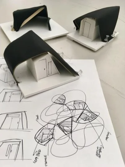 Here we are looking at how to bridge the visual language between two separate entities (canopy + home). How does the canopy communicate with the structure and vice versa to create one dynamic form.